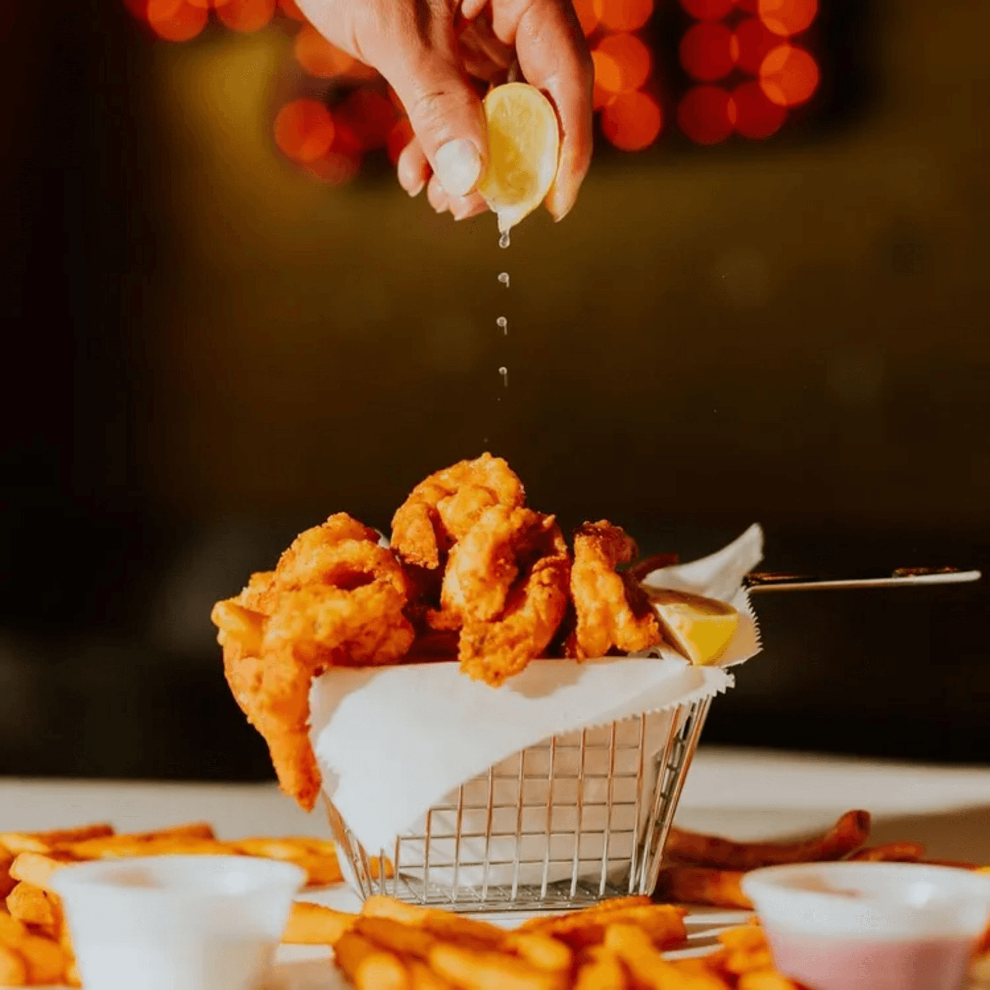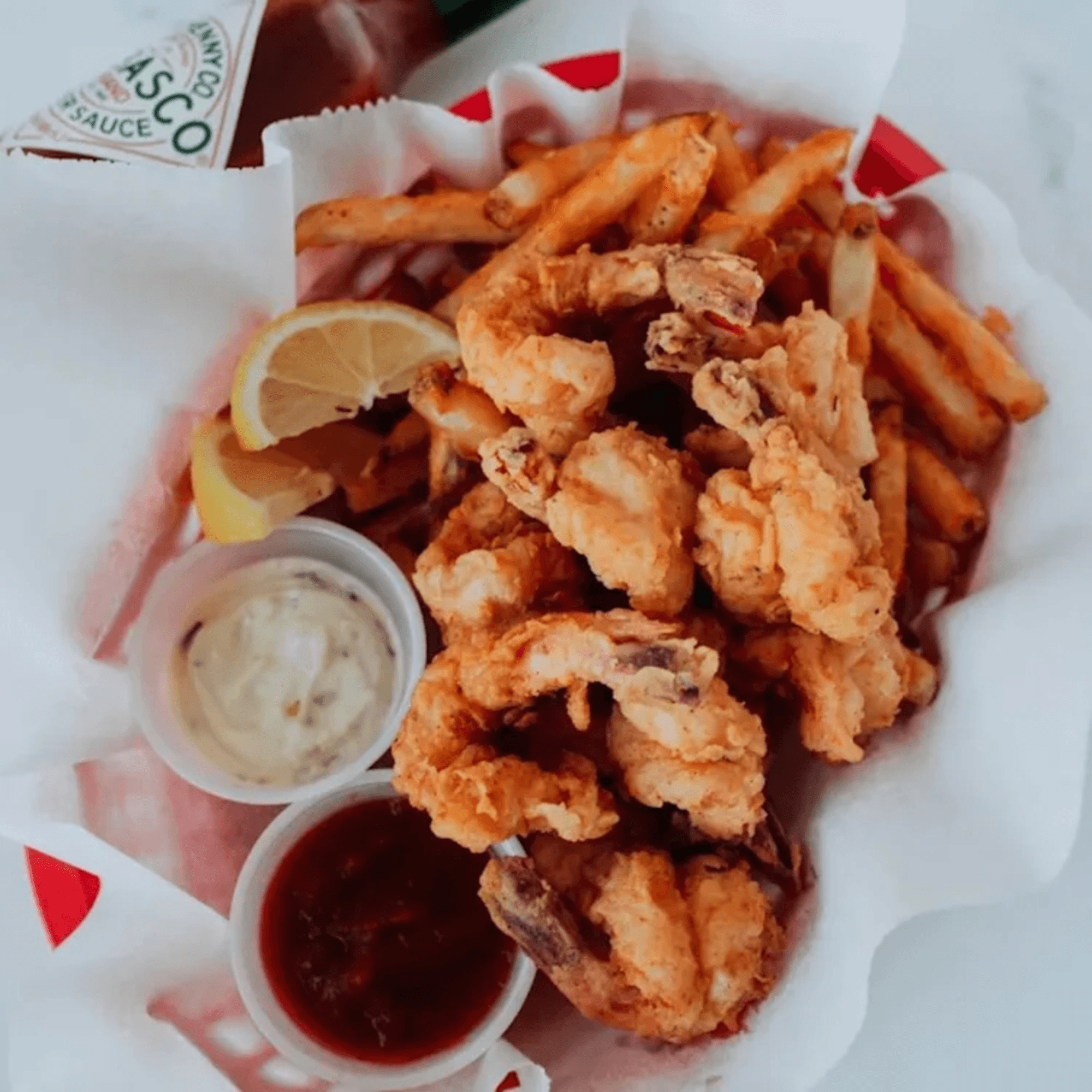 We are known for Oysters, Andouille Sausage, Shrimp, Fried Catfish, Calamari, Crawfish, Oyster, Crab, Fried Calamari, Lobster, and Fried Shrimp
